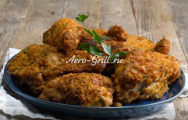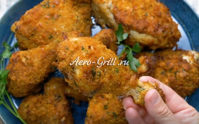 Жареная курица, приготовленная в аэрогриле, — одно из главных удовольствий, которое дарит аэрофритюрница. Благодаря панировке из измельчённых крекеров мясо выходит особенно хрустящим снаружи, мягким и сочным внутри — именно таким, каким хочется наслаждаться снова и снова.